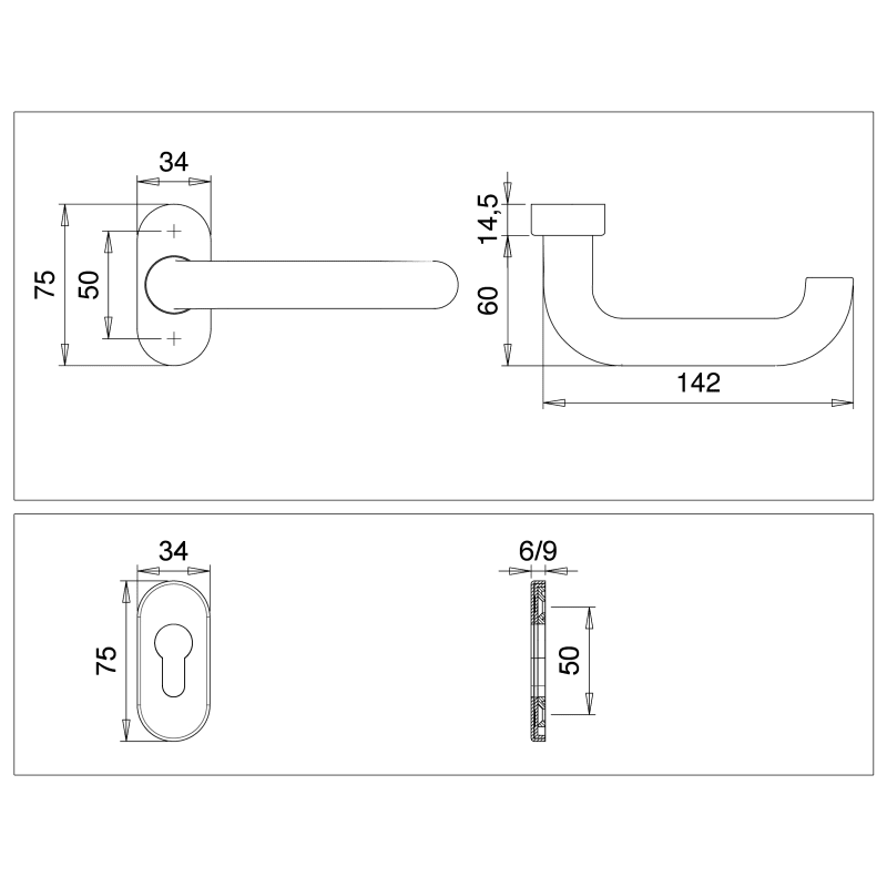 EDI, Profiltür-Drücker-Halbgarnitur, Lochung: Profilzylinder gelocht, Vierkant: 8 mm, DIN-Richtung: DIN Links-Rechts, Modell: Ares, Modellnummer: 1103/0813, Material: Edelstahl, Farbton: edelstahl, Ob