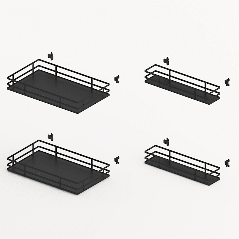 • Zum Einhängen in den Auszugsrahmen Iseo bzw. in das Türregal Iseo• HDF Boden (5 mm) weiss bzw. anthrazit• Flachdraht-Reling StahlSet besteht aus:• 2 Stück Tablare für den Auszugsrahmen (Belastbar