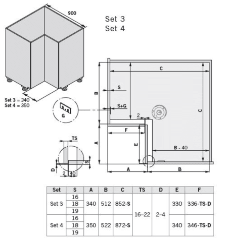 VS COR® Spin 71 Drehbeschlag für Ecken- Teleskop-Standrohr für verschiedene Korpushöhen- einheitliche Türanbindung mit optimaler Stabilität für Standard- und Rahmentüren- ideales Fugenbild durch dreid