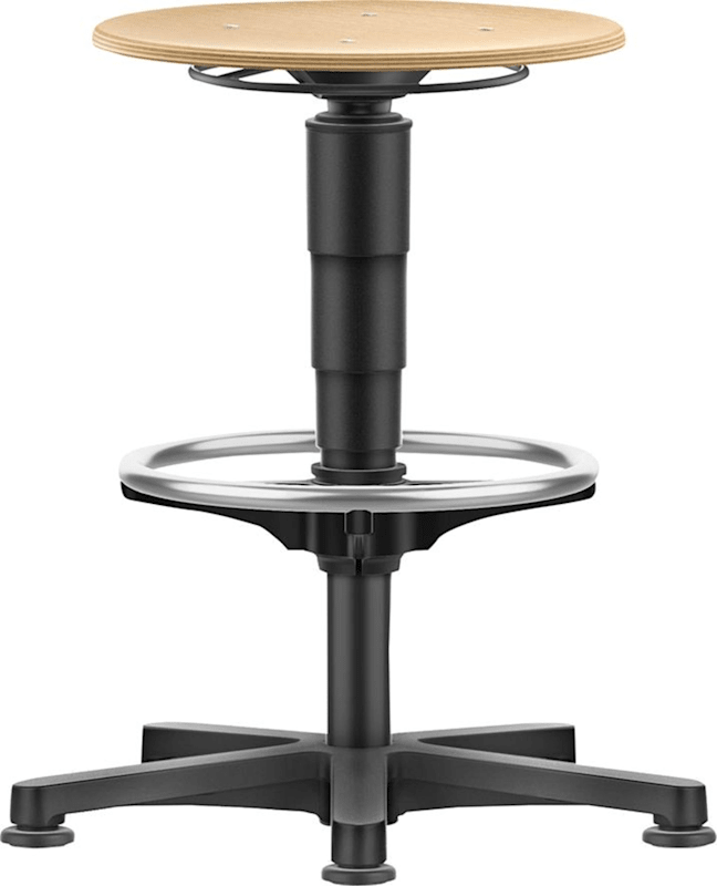 bimos Drehhocker Holz Rundsitz Sitzhöhe 530 - 750 mm mit Gleiter und Fußring