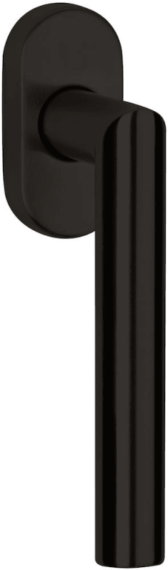 HERMAT Fenstergriff BASIC 02 1802/DK.KGL; Produkttyp: Fenstergriff; Produkttyp (Hersteller): Fenstergriff; Ausführung: Standard; Rastung: 90°,Kugelrastung; Stütznocken: mit Stütznocken; Material: Edelstahl; Befestigungsart: verdeckt verschraubt; Länge: 130 mm; Höhe: 55 mm; Durchmesser: 20 mm; Befestigungsabstand: 43 mm; Form Rosette: oval; Breite Rosette: 33 mm; Höhe Rosette: 68 mm; Stärke Rosette: 14 mm; Material Unterkonstruktion: Kunststoff; Durchmesser Stütznocken: 10 mm; Norm: DIN EN 13126-3; Einsatzbereich: Drehkipp; Fensterwerkstoff: Aluminium,Kunststoff,Holz; Vierkant: 7 mm; Stift vorstehend: 24/32+36/42 mm; DIN-Richtung: DIN Links-Rechts; Farbe: schwarz; Farbton: smoke black