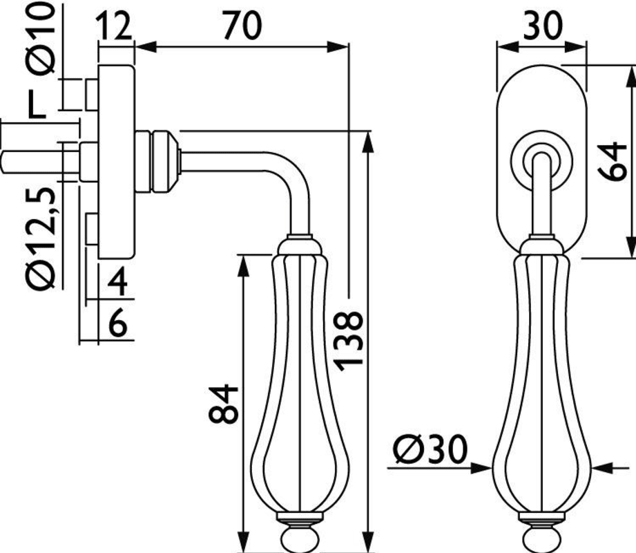 Drehkipp-Rasterolive 1048 DK LADY, Stiftlänge ca. 40 mm vorstehend, Oberfl. 01 WG (Messing poliert/Weiß Gold)