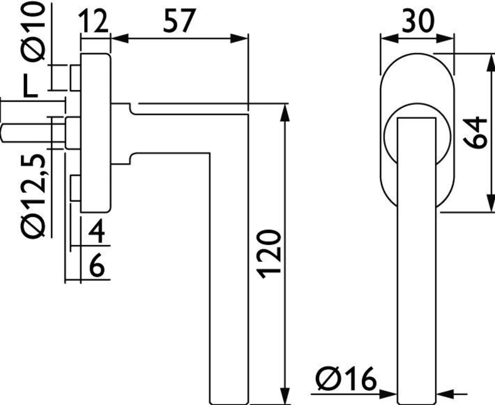 Drehkipp-Rasterolive 1835 DK SQUARE, Stiftlänge ca. 31 mm vorstehend, Oberfl. 61 (Edelstahl poliert)