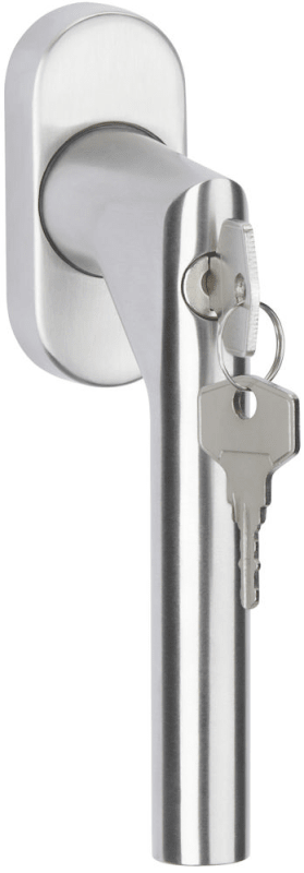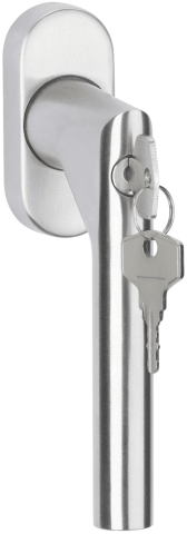 Drehkipp-Rasterolive 1802 DKI BASIC 02, Stiftlänge 24/31 + 36/42 mm vorstehend, Druckzylinder E45 im Griffteil, Schrauben M5x50 mm, für einbruchhemmende Fenster nach DIN EN 1627, Oberfl. 60 (Edelstahl
