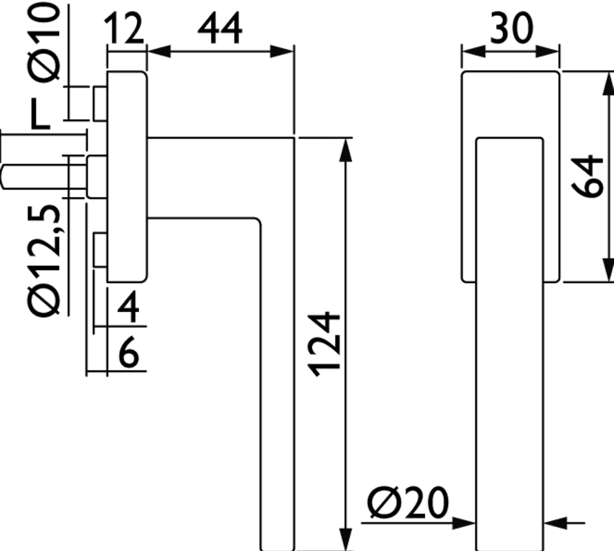 Drehkipp-Rasterolive 1682 L DK WEST, Stiftlänge ca. 31 mm vorstehend, mit kantiger Abdeckung, Oberfl. 60 (Edelstahl matt)