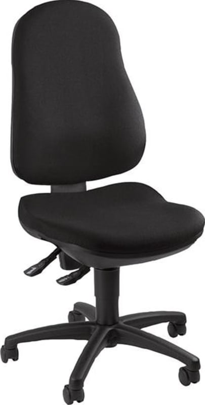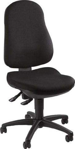 Bürodrehstuhl Modell Point 70 • Bezugsstoff: 100 % Polypropylen, flammhemmend EN 1021 Teil 1–2 • Rückenlehne: mit organischer Ausformung und integrierter Lendenwirbelstütze für den gesamten Rückenbereich, in Höhe und Neigung stufenlos verstellbar, breite Abdeckung des Neigegelenkes • Untergestell: Polyamid-Fußkreuz in schwarz • Rollen: mit lastabhängig gebremsten Sicherheitsdoppelrollen für weiche Böden • Technik: Komfort-Permanentkontaktmechanik zur Verstellung der Rückenlehnenneigung • Sitzhöhenverstellung: stufenlos mit TOPLIFT (TÜV-geprüft), DIN EN 1335 Teil 1–3 Hinweis: Spezial-Bandscheibensitz mit Beckenstütze.