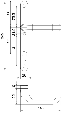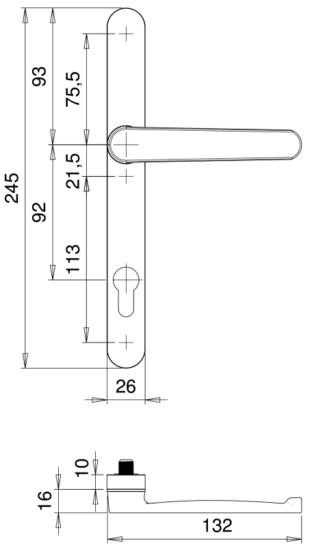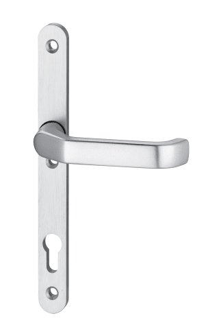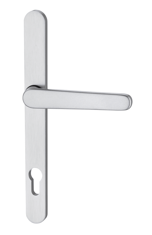 Drückergarnitur Atlas 1200/9026, Langschild oval, Profilzylinder gelocht, Entfernung 92mm, Vierkant 8, DIN Links-Rechts, Türstärke 68 - 73mm, mit Stütznocken, verkehrsweiß beschichtet, festdrehbar