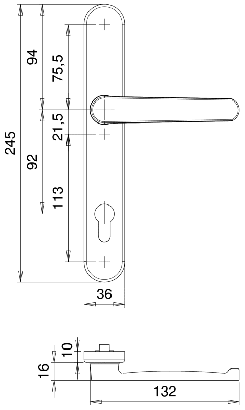 EDI, Profiltür-Drückergarnitur, Abdeckung: Langschild, Lochung: Profilzylinder gelocht, Entfernung: 92mm, Vierkant: 8mm, Material: Edelstahl, Farbton: edelstahl, Oberfläche: matt, Modell: Kronos, Modellnummer: 1200/9035, DIN-Richtung: DIN Links-Rechts, Lagerung: festdrehbar, Rückholfeder, Ausführung: mit Drücker R9, Befestigungstechnik: mit Stütznocken, Befestigungsart: verdeckt verschraubt, Befestigungssystem: Stiftbefestigung, Länge: 245mm, Breite: 36mm, Schildstärke: 10mm, Anschlagrichtung: Drücker rechts/links verwendbar, Drückerbefestigung: Vollstift, Form: oval, Drückerform: Gehrung, U-Form, Türart: Rahmentüren, Türwerkstoff: Aluminium, Kunststoff