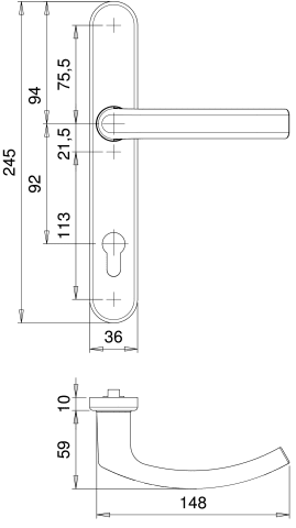 EDI, Profiltür-Drückergarnitur, Abdeckung: Langschild, Lochung: Profilzylinder gelocht, Entfernung: 92mm, Vierkant: 8mm, Material: Aluminium, Farbe: weiß, Farbton: verkehrsweiß, Oberfläche: lackiert, Modell: Kronos, Modellnummer: 2001/9535, DIN-Richtung: DIN Links-Rechts, Lagerung: festdrehbar, Rückholfeder, Ausführung: mit Drücker R9, Befestigungstechnik: mit Stütznocken, Befestigungsart: verdeckt verschraubt, Befestigungssystem: Stiftbefestigung, Länge: 245mm, Breite: 36mm, Schildstärke: 10mm, Anschlagrichtung: Drücker rechts/links verwendbar, Drückerbefestigung: Vollstift, Form: oval, Drückerform: Gehrung, U-Form, flach, Lieferung: mit Befestigungsmaterial, Türstärke min.: 69mm, Türstärke max.: 75mm, Türart: Rahmentüren, Türwerkstoff: Aluminium, Holz, Norm: SKG®