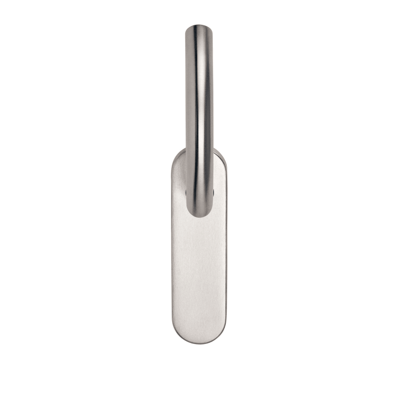 BKS Drehhebelgarnitur OFFICE B-72910; Material: Edelstahl; Befestigungsart: verdeckt verschraubt; Befestigungstechnik: mit Stütznocken; Vierkant: 9 mm; Abdeckung: Kurzschild; Form: oval; Einsatzbereich: Feuerhemmend; Basis: Drehhebelgarnitur; Befestigungssystem: Stiftverbindung; Zulassung: für Feuerschutz,für Notausgänge,für Rauchschutz; Anschlagrichtung: Drücker rechts/links verwendbar; Schildstärke: 9 mm; DIN-Richtung: DIN Links-Rechts; Drückerdurchmesser: 21 mm; Breite: 45 mm; Länge: 167 mm; Farbe: silber; Oberfläche: matt gebürstet; Farbton: edelstahl; Norm: DIN 18273,DIN EN 179,DIN EN 1906; Türart: Fluchttüren; Drückerbefestigung: Vierkantstift; Türwerkstoff: Holz,Stahl; Drückerhöhe: 70 mm; Drückerlänge: 150 mm; Ausführung: mit Drücker H4.0; Drückerform: gebogen