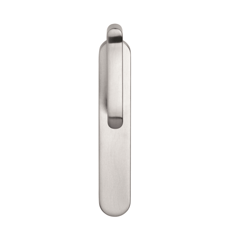 BKS Drehhebelgarnitur DIRIGENT B-72920; Material: Edelstahl; Befestigungsart: verdeckt verschraubt; Befestigungstechnik: mit Stütznocken; Vierkant: 9 mm; Abdeckung: Langschild; Form: oval; Einsatzbere