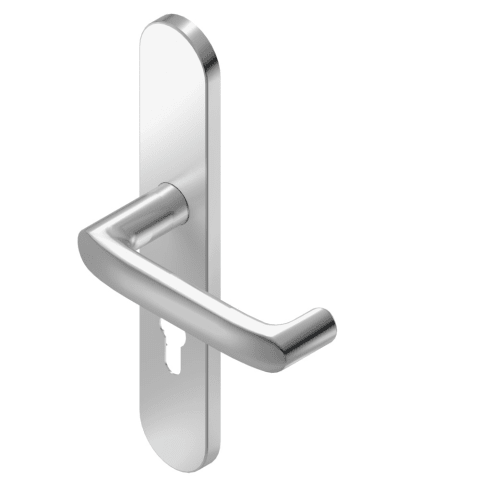 BKS Drehhebelgarnitur DIRIGENT B-72920; Material: Edelstahl; Befestigungsart: verdeckt verschraubt; Befestigungstechnik: mit Stütznocken; Vierkant: 9 mm; Abdeckung: Langschild; Form: eckig; Einsatzber
