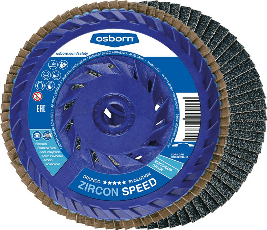 Fächerschleifscheibe ZIRCON SPEED, gerade• Zirkonkorund • Kunststoffteller mit Kühlschlitzen • M14-Gewinde • Für Flächen-, Kantenbearbeitung auf Stahl und Edelstahl