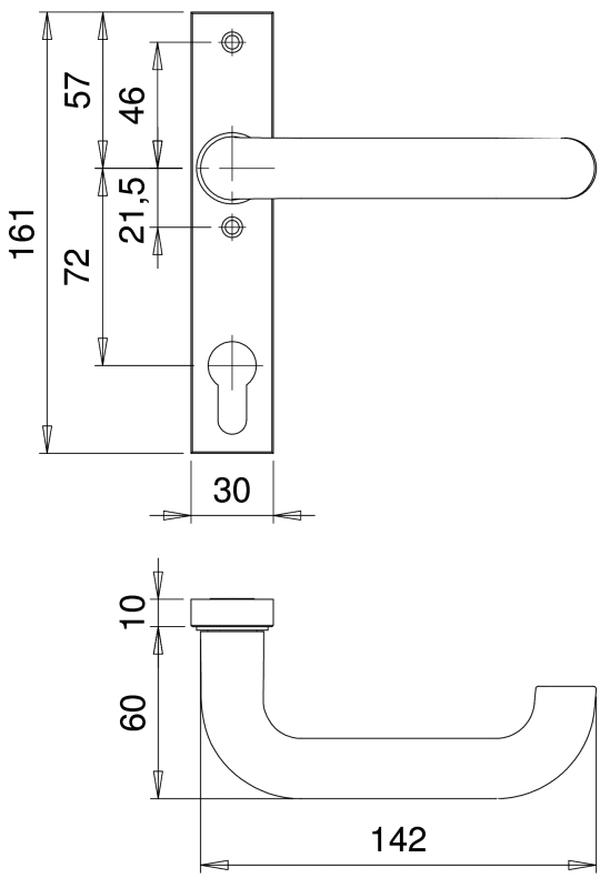 EDI, Zimmertür-Drücker-Halbgarnitur, Abdeckung: Kurzschild, Lochung: Profilzylinder gelocht, Entfernung: 72 mm, Vierkant: 8 mm, Modell: Luna, Modellnummer: 1103, Material: Edelstahl, Farbton: edelstah
