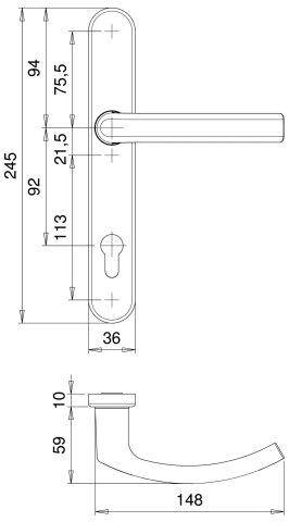 EDI, Profiltür-Drücker-Halbgarnitur, Abdeckung: mit Langschild, Modell: Kronos, Modellnummer: 2000/0235, Lochung: Profilzylinder gelocht, Entfernung: 92 mm, Vierkant: 8 mm, Material: Aluminium, Farbto
