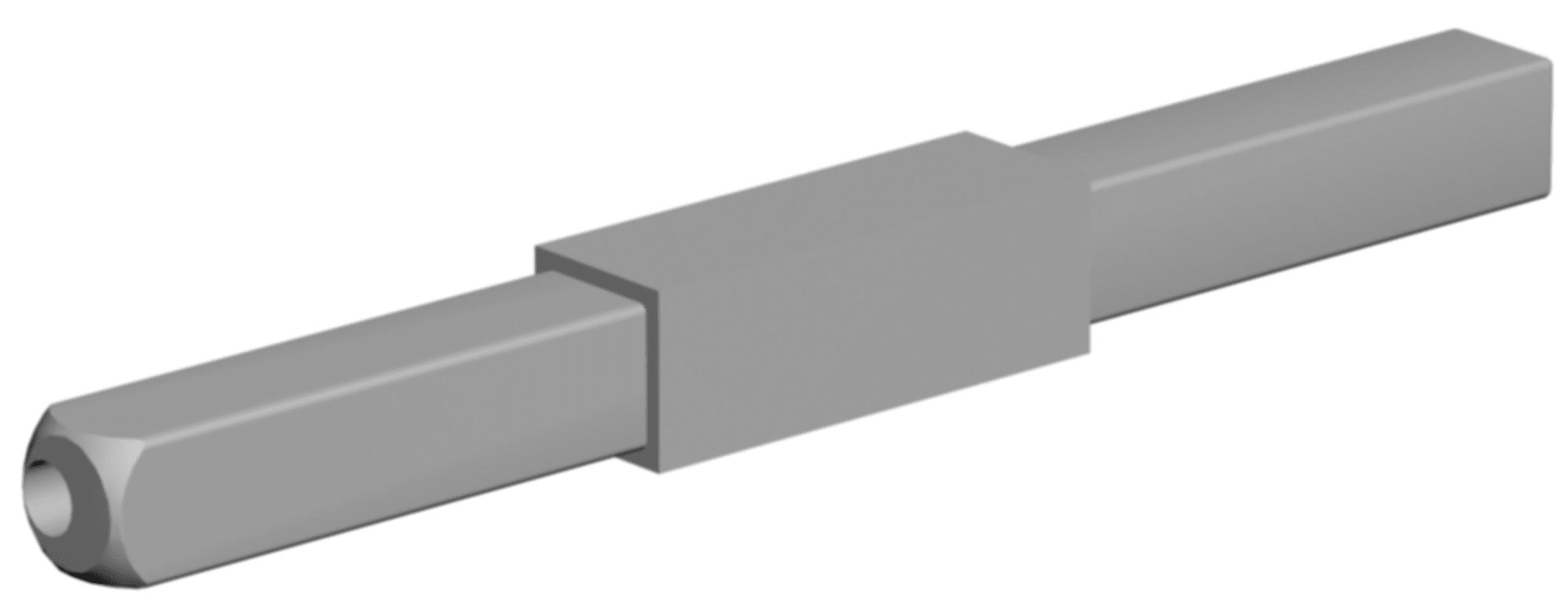Drücker-Vierkant - Lochstift, Länge 8/10/8 x 120 mm, Bohrung 35 mm tief, abgesetzt auf 8 mm, Länge 45 mm, Eisen verzinkt