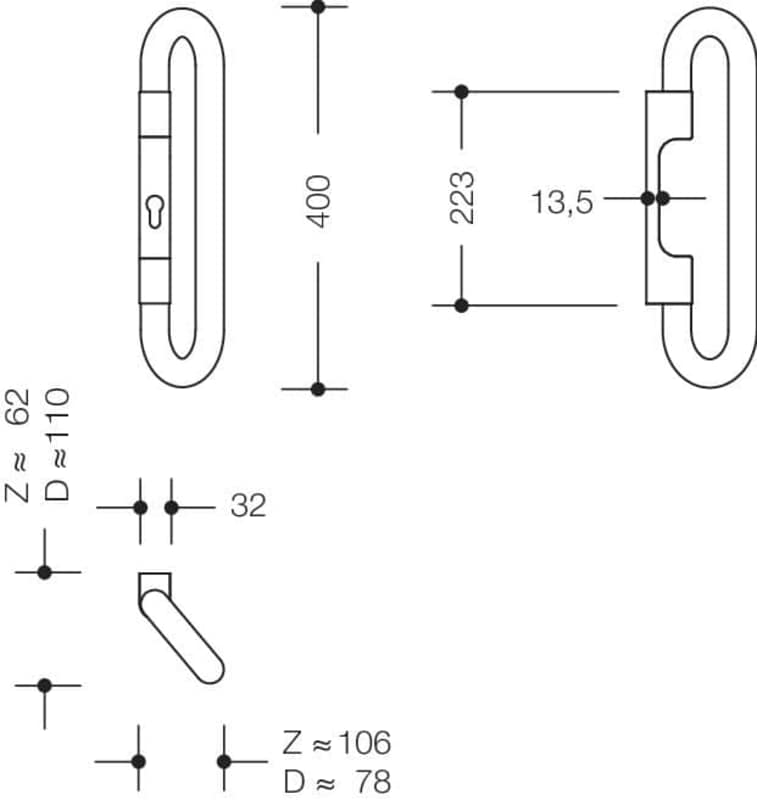 DRÜCKERGRIFF 550 18 STIFT GETEILT 72.3PS TIEFSCHWARZ