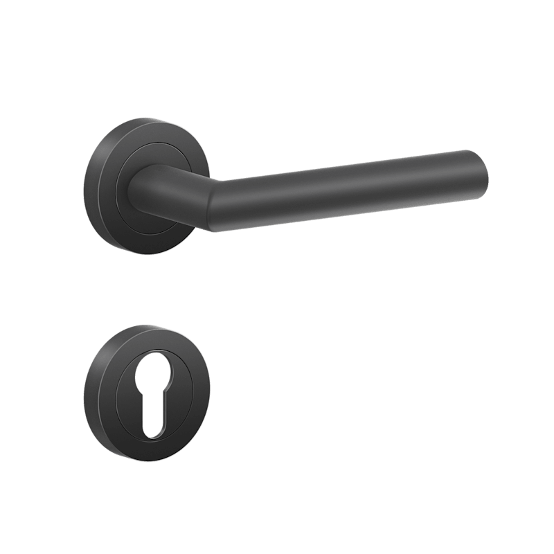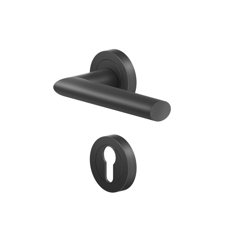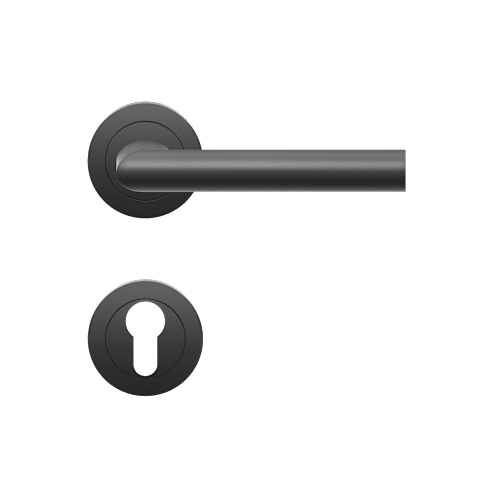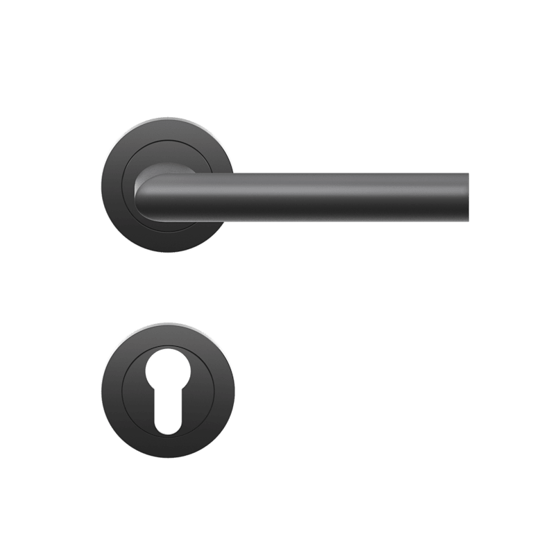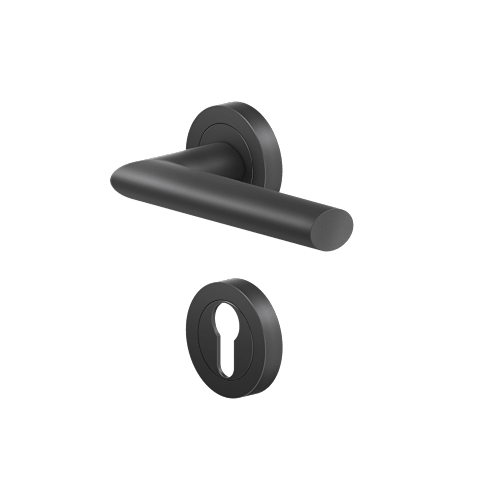 DrückergarniturER37 - Verona auf dreiteiliger, runder Rosette in Kosmos Schwarz, Gebrauchskategorie 3 nach DIN/EN1906
