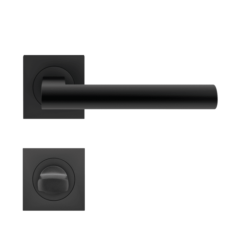 Drückergarnitur ER45Q - Madeira auf dreiteiliger, quadratischer Rosette in Kosmos Schwarz, Gebrauchskategorie 3 nach DIN/EN1906