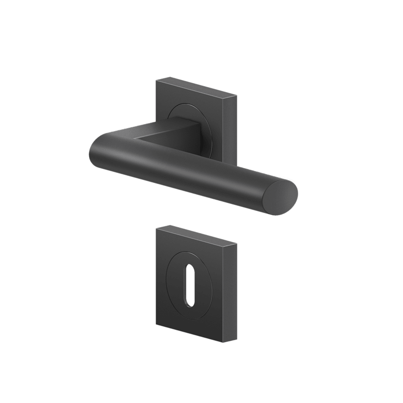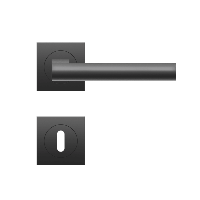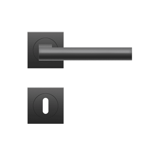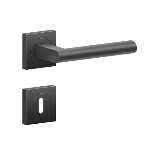 Drückergarnitur ER45Q - Madeira auf dreiteiliger, quadratischer Rosette in Kosmos Schwarz, Gebrauchskategorie 3 nach DIN/EN1906