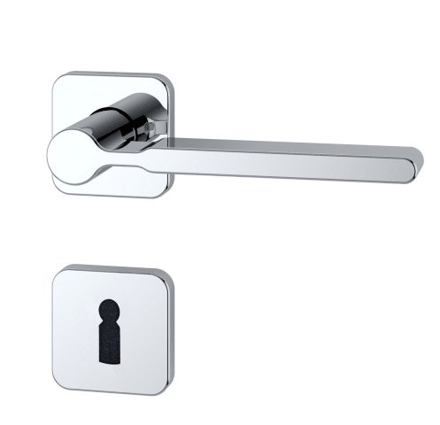 ZT-Drückerpaar mit 8 mm und 9 mm Vierkant für Türstärke 38-42 mm Drückerrosetten 52x52 mm mit Stütznocken + Schrauben M 5 x 45 Schlüsselrosetten 52x52 mm BB- oder PZ-gelocht mit Stütznocken + Schrau