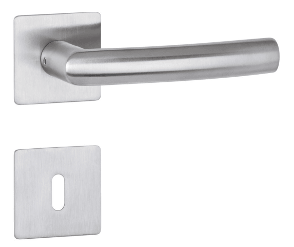 Innentür-Drückergarnitur ZT - Drückergarnitur 1807 BASIC 07, mit MAGCLIP Rosetten 2611 FL & RHF Tst. 37-47, Oberfläche 60 (Edelstahl matt). Technische Daten: • Drücker fest/drehbar gelagert mit Hochh