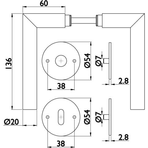 Meesenburg Artikelbezeichnung: DRÜCKERGRT. MAGNETIC 1802/2636.FL.PZ-60 TS. 38-45 MM 60 EDELSTAHL MATT