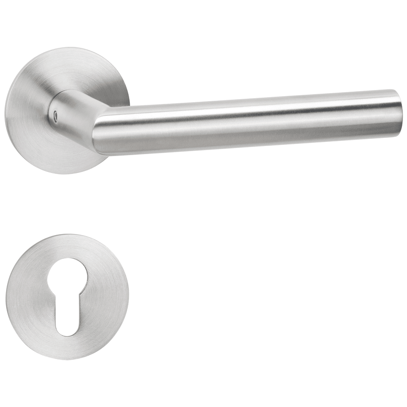 ZT-Drückergarnitur 1802 BASIC 02, mit MAGCLIP Rosetten 2636 FL & RHF, Ausf.: PZ, fest/drehbar, mit Rückholfeder, Tst. 37 - 47 mm, Oberfl. 60 (Edelstahl matt)