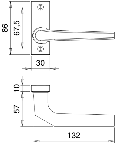 Rahmentür-Drückerlochteil fest drehbar auf Massivrosette - kantig asymmetrisch