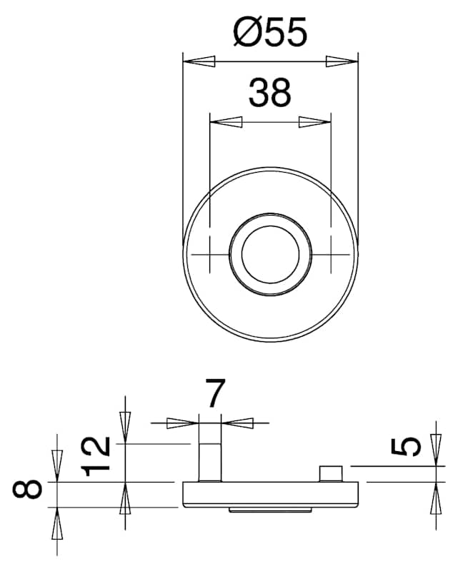 Drückerrosette 1082, innen, rund, mit Stütznocken, Türstärke min. 40mm, Türstärke max. 45mm, naturfarben, eloxiert