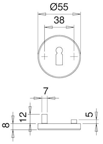 Schlüsselrosette 1085, innen, rund, mit Stütznocken, Buntbart gelocht, 8mm, Türstärke min. 35mm, Türstärke max. 45mm, naturfarben, eloxiert