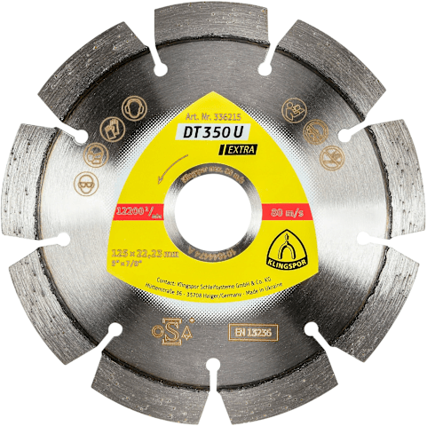 Die lasergeschweißte Universalscheibe DT 350 U Extra ist ideal für das schnelle Schneiden von Beton und anderen Baumaterialien. Das Multitalent bietet Klingspor Markenqualität zum besonders attraktiven Preis und in ihrer Klasse die beste Leistung.
