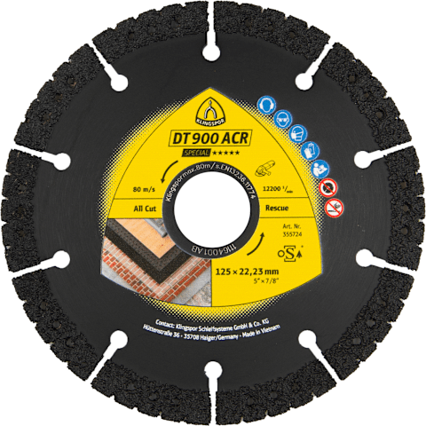 Vakuum-gelötete Diamanttrennscheibe für nahezu alle Materialien - Sehr breites Anwendungsspektrum durch spezielles Herstellverfahren - 10 mm hohe Diamantbeschichtung für eine gute Standzeit und einen aggressiven Schnitt bei sehr unterschiedlichen und anspruchsvollen Materialien - Ideal geeignet für Rettungsdienste