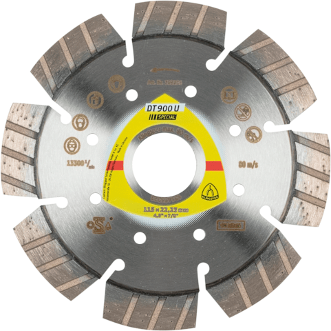 Die lasergeschweißte Universalscheibe DT 900 U Special ist ideal für den professionellen Einsatz bei harten Baumaterialien, Beton und Gestein. Dank titanbeschichteter Diamanten ist die besonders aggre