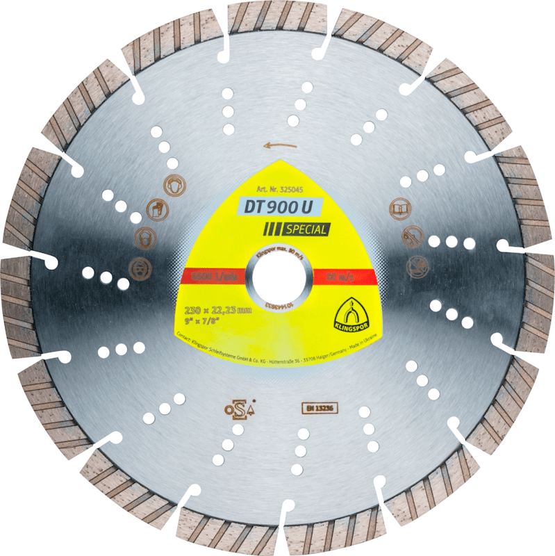 Die lasergeschweißte Universalscheibe DT 900 U Special ist ideal für den professionellen Einsatz bei harten Baumaterialien, Beton und Gestein. Dank titanbeschichteter Diamanten ist die besonders aggre