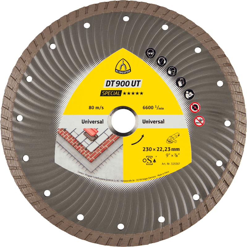 Die Universalscheibe DT 900 UT Special ist ideal für Dachziegel, Beton und Baumaterialien. Die aggressive Hochleistungs-Scheibe arbeitet sauber und zuverlässig auch unter harten Einsatzbedingungen und bietet erstklassige Klingspor Markenqualiät.