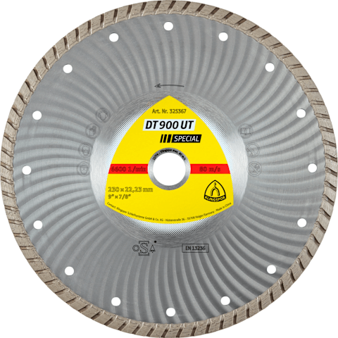 Die Universalscheibe DT 900 UT Special ist ideal für Dachziegel, Beton und Baumaterialien. Die aggressive Hochleistungs-Scheibe arbeitet sauber und zuverlässig auch unter harten Einsatzbedingungen und bietet erstklassige Klingspor Markenqualiät.
