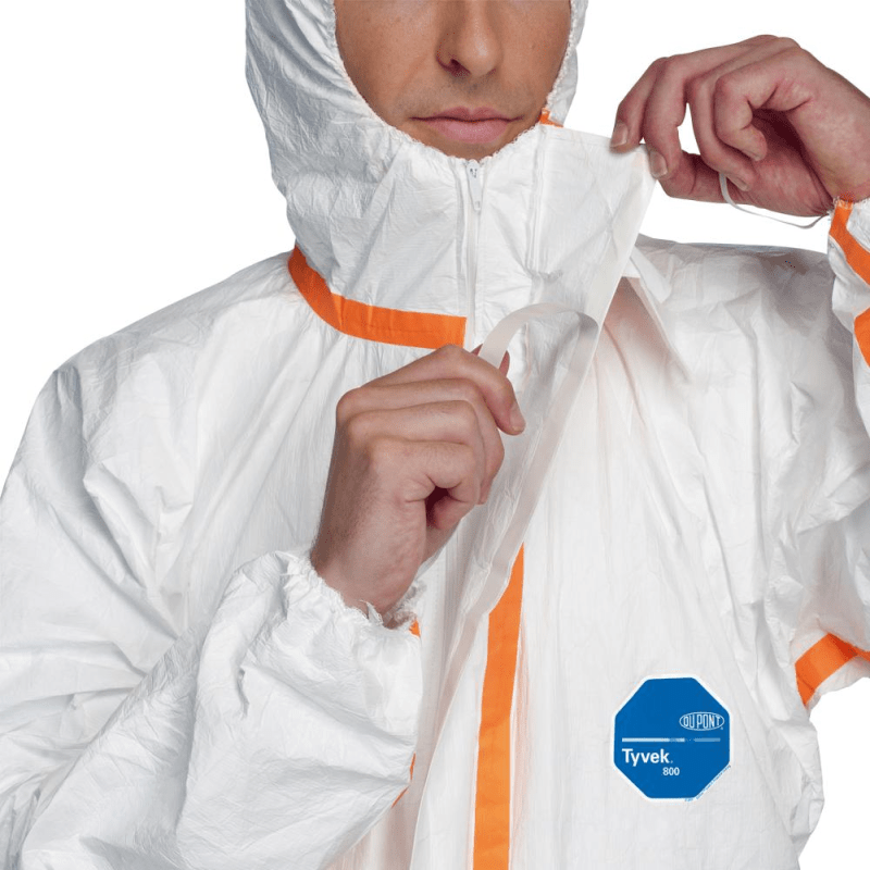 Einweganzug Tyvek® »800J«Eigenschaften: • Schutzklasse Kat. III, Typ 3B, 4B, 5B, 6B • Schutz gegen zahlreiche wasserbasierende, anorganische Chemikalien in geringer Konzentration (auch unter Druck)