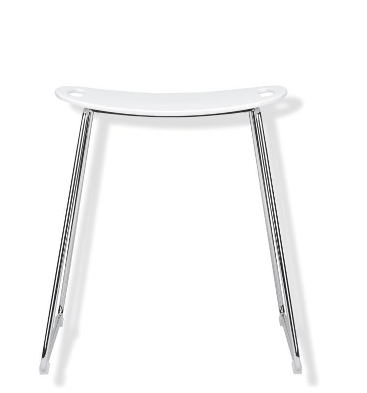 HEWI Duschhockermit integrierten Griffmulden zum einfachen Hinsetzen und Aufstehen, belastbar bis 150 kg, Eigengewicht: 5,2 kg, 507 mm hoch, 489 mm breit, Sitzfläche 462 mm breit, Gestell hochwertig v