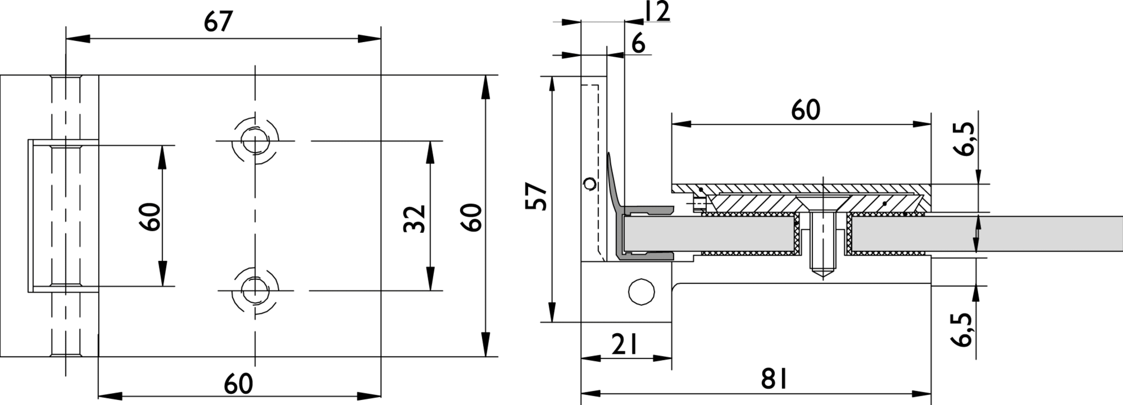 Duschtürband Glas/Wand 90°, nach innen öffnend mit einseitiger, Langlochschraubplatte / verdeckte Verschraubung, Glas 8 mm, 36 kg Tragkraft, 2000 x 900 mm Tür max., Oberfl. 04 (Glanzchrom)