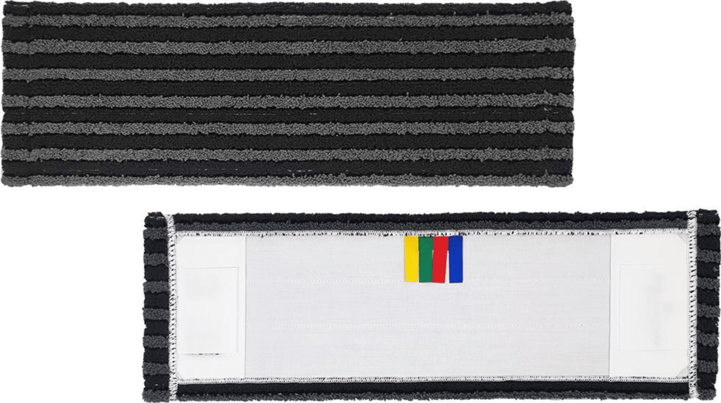 Mikrofasermopp • Für alle Klapphalter-Systeme geeignet • Mikrofaser-Plüsch mit grauen Einsatzstreifen • 80 % Polyester, 20 % Polyamid • Fest unterlegtes Rückendeckblatt • Mit Taschen und Laschen
