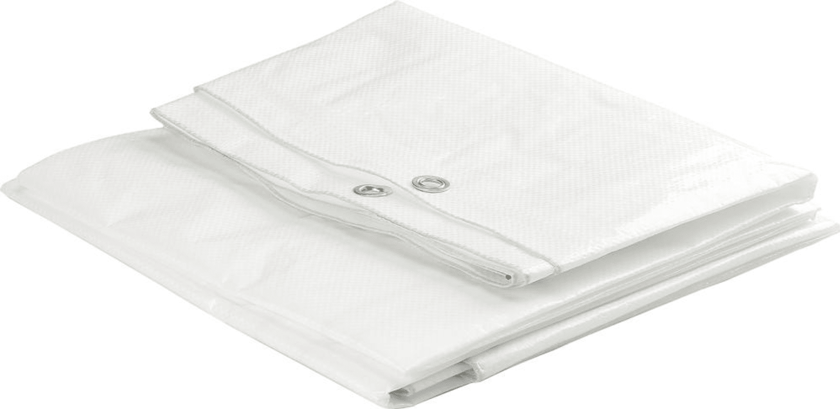 PE-Bändchengewebeplane, naturweiß• Mit Rand und Ösen • Plane aus Polyethylen-(PE)-Bändchengewebe; beidseitig PE-beschichtet; absolut wasserdicht, nicht UV-beständig • 12 x 12 Bändchen/Inch² • 160