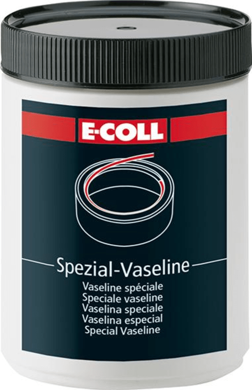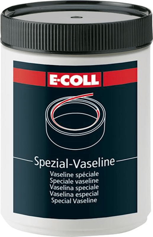 E-COLL Spezial-Vaseline, weißHochraffinierte, pharmazeutische, langziehende Vaseline. Zum Schmieren, Konservieren, Abdichten, Isolieren, Lederpflegen. Säurefrei, giftfrei (DAB). Tropfpunkt: ca. +55 °C.