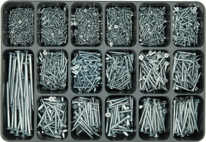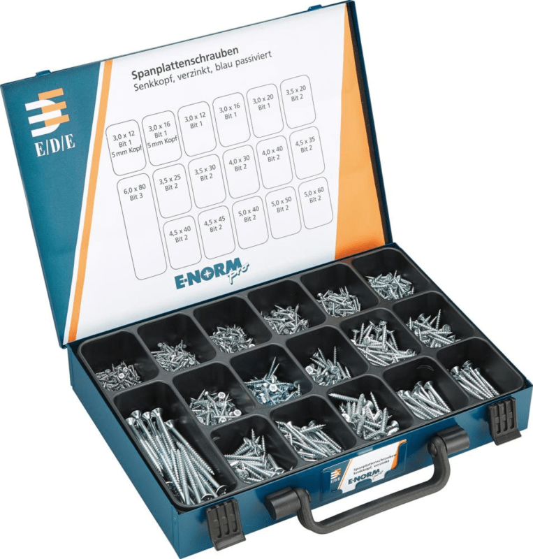 Spanplattenschrauben-Sortiment, Senkkopf, Kreuzschlitz Z, blau verzinkt