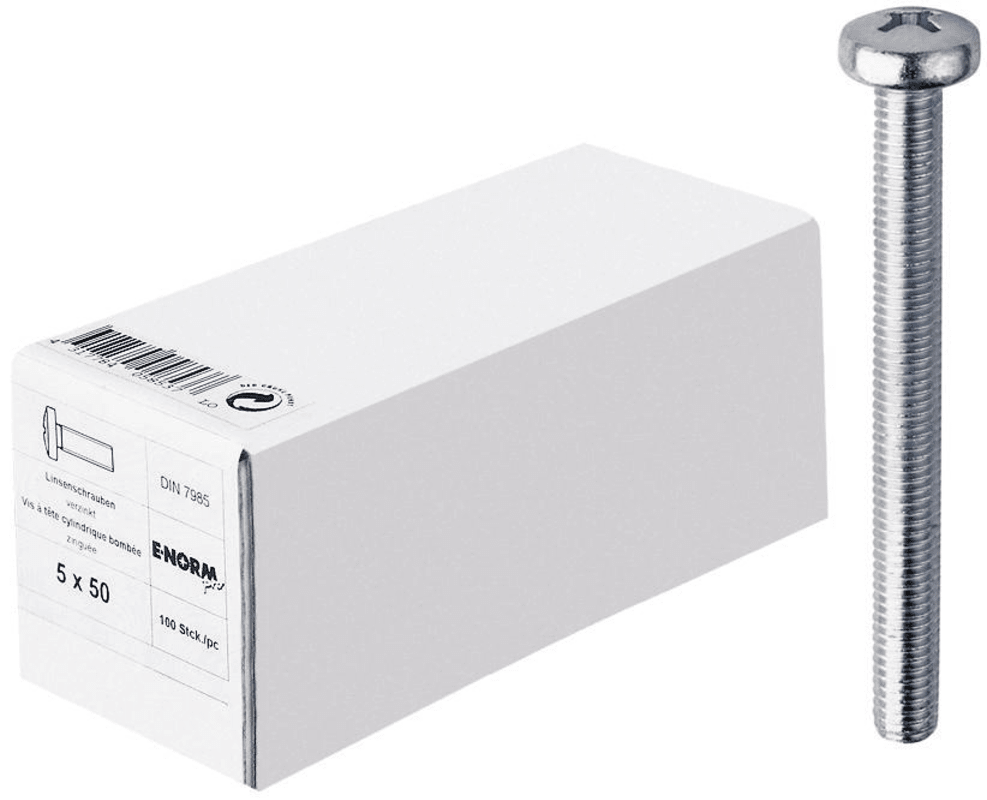 DIN 7985, Linsenschraube, mit Kreuzschlitz H (Phillips), galvanisch verzinkt, KleinpaketeLieferung: In Kleinpakete.