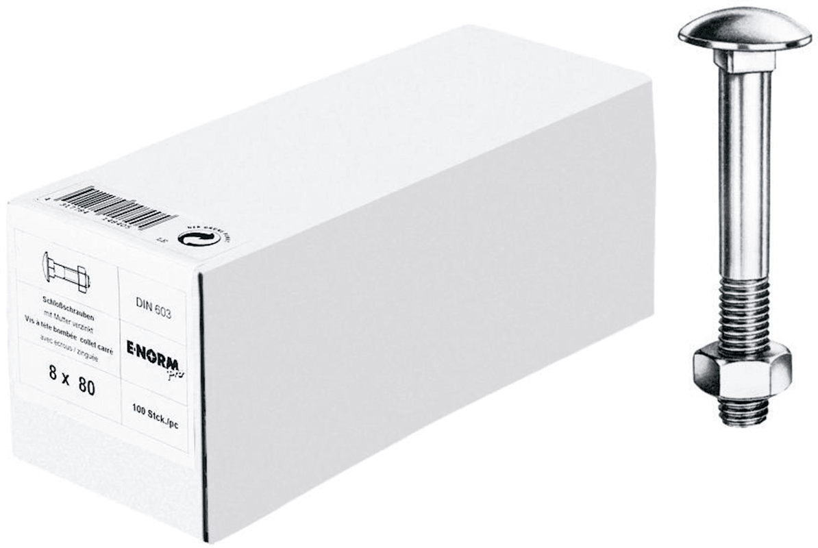 Meesenburg Artikelbezeichnung: E-NORMPRO SCHLOSSSCHRAUBE DIN 603 M. MUT VZ M12X60MM HP