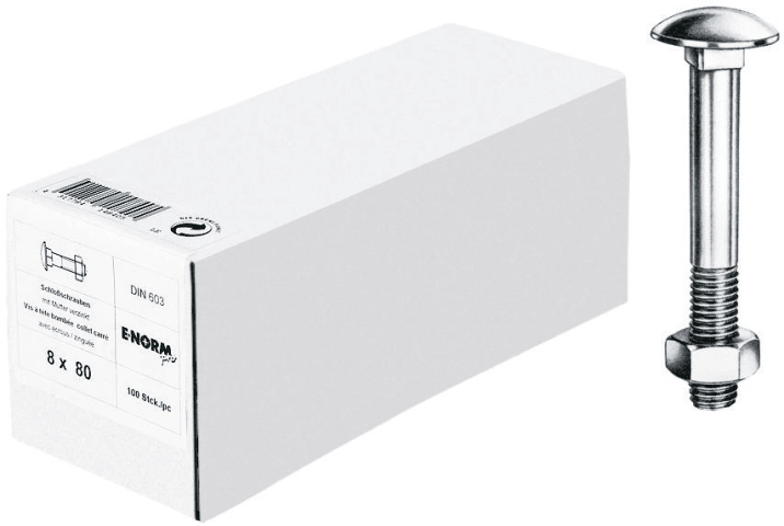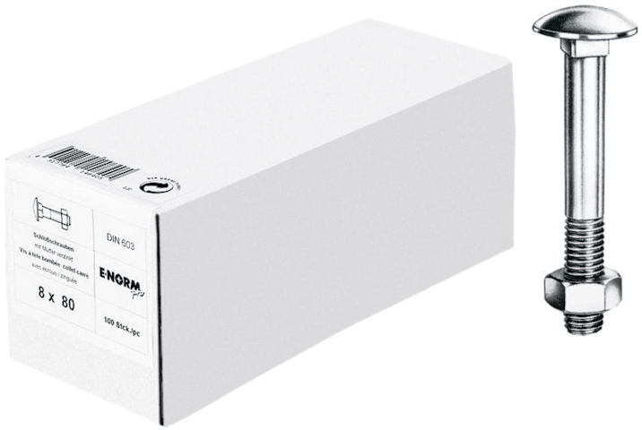Meesenburg Artikelbezeichnung: E-NORMPRO SCHLOSSSCHRAUBE DIN 603 M. MUT VZ M6X16MM HP