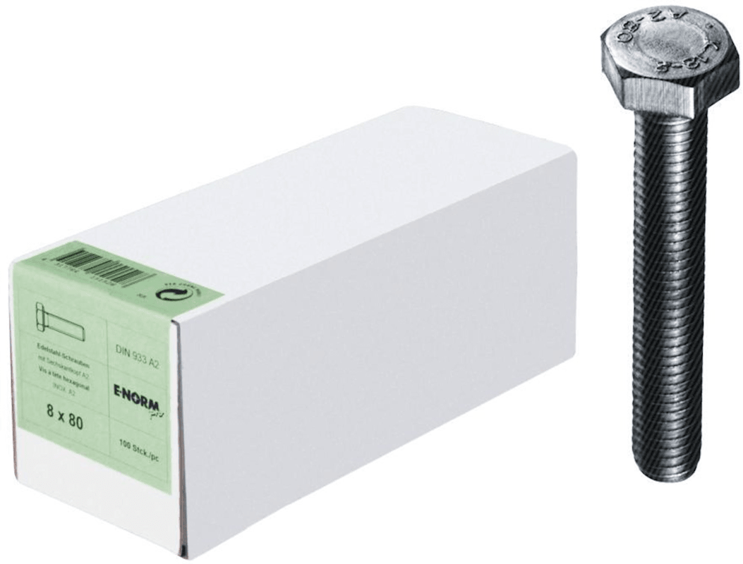 DIN 933, 6-kant-Schraube, mit Gewinde bis Kopf, Edelstahl A2