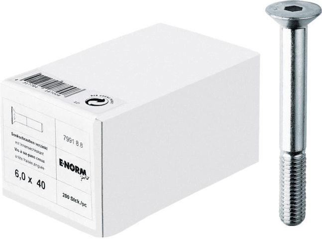 Meesenburg Artikelbezeichnung: E-NORMPRO SENKSCHRAUBEN DIN 7991 8.8 INNENSECHSKANT GALV. VZ M8X30MM HP
