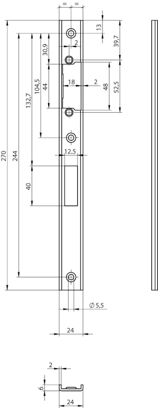 E-ÖFFNER SCHLIEßBLECH OS U6X24X270 ED LS PROFIX2